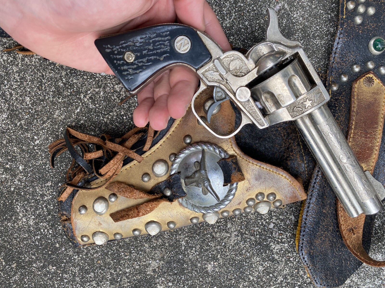 Vintage Pair Nichols Stallion 32 Chrome Cap Guns Leather Holster 1950s As Is Ebay